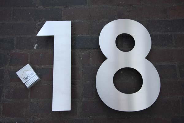 Die Edelstahl Hausnummer ist rückseitig mit Gewindebolzen versehen, die eine einfache Wandmontage ermöglichen.