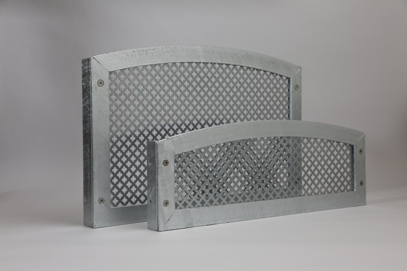 Füllung aus verzinktem Stahl mit Kleeblatt Lochung, t=1,0 mm.
