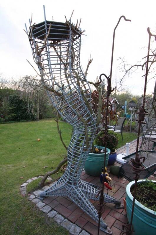 Wahrhaft gigantisches Bein aus Rundstahl als Rankskulptur.
