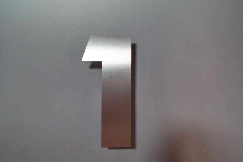 Hausnummer 1 angefertigt, aus 3 mm starkem Edelstahl.