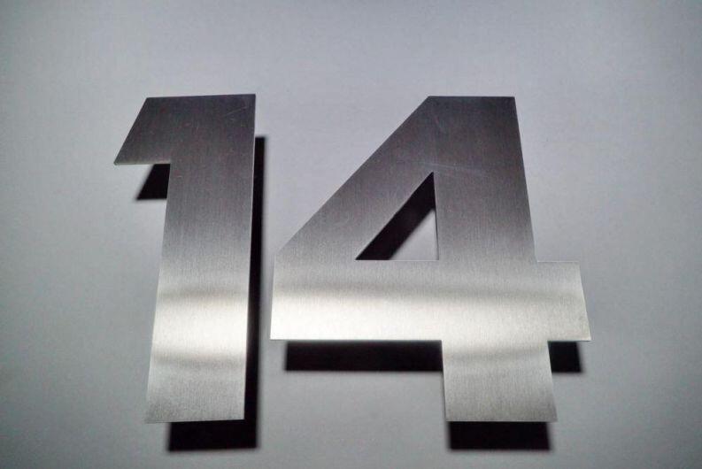Hausnummer 14 angefertigt, aus 3 mm starkem Edelstahl.