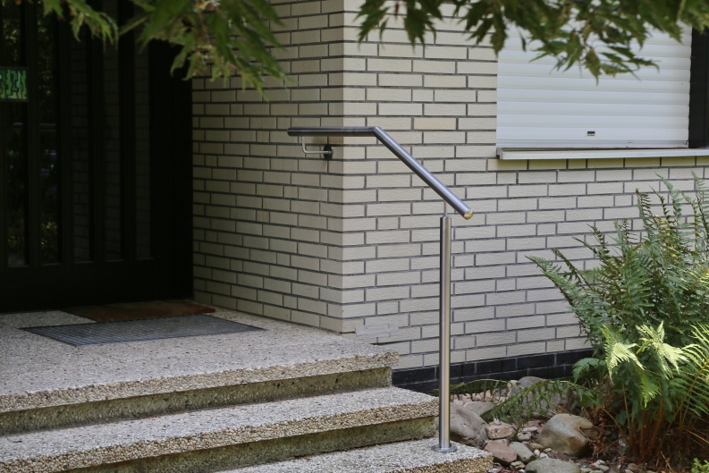 Das Edelstahlgeländer besteht aus zwei Pfosten aus Edelstahlrohren, Durchmesser 42.4mm.