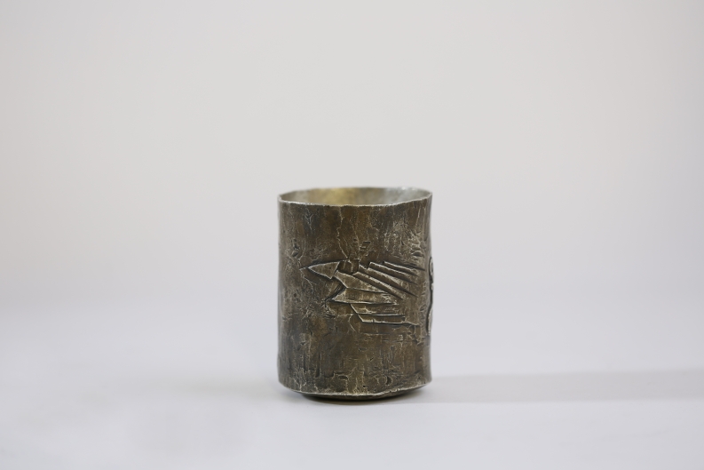 Erzählender Silberbecher Feinsilber dickwandig geschmiedet.