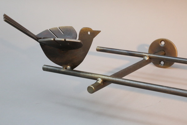 Rundstahl geschweißt und geschmiedet, Vögel aus 3 mm Stahlblech.