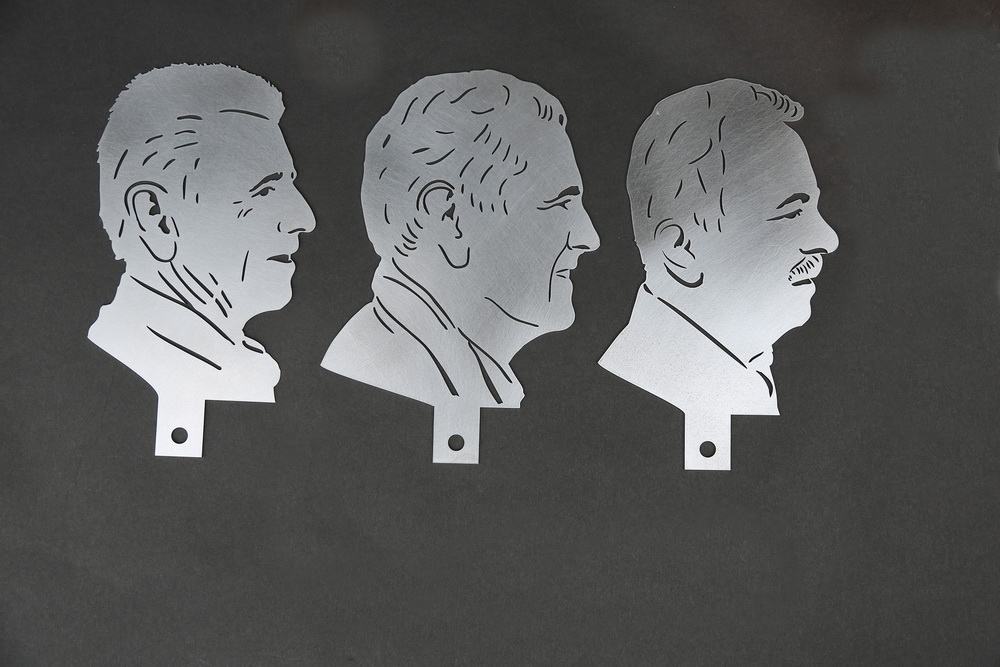 Nach einer Fotovorlage haben wir diese Portrais aus Stahlblech gefertigt.