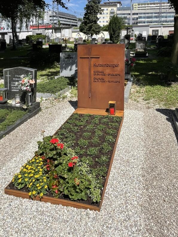 Die Grabumrandung ist aus 5 mm Corten Stahl gefertigt.