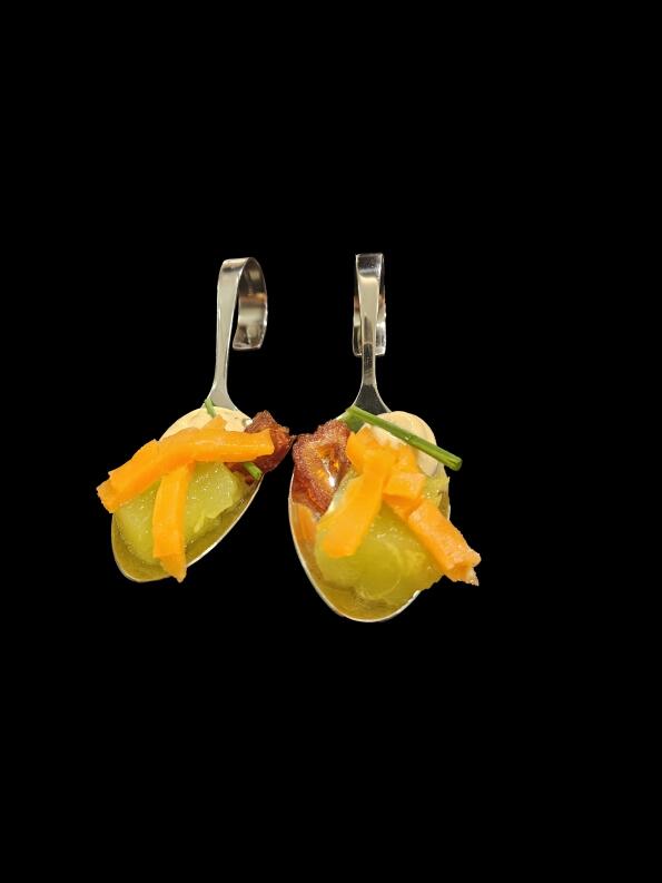Je ein Stück Gelee auf einen Amuse-Gueule-Löffel setzen.
