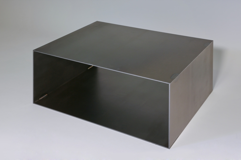 Verzundertem Stahlblech, farblos lackiert mit klarem Zaponlack,