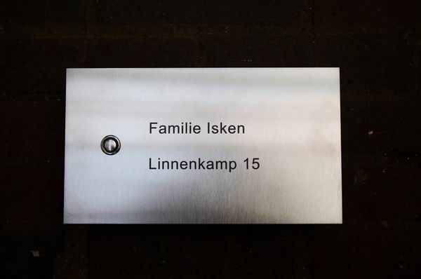 Das hochwertige Klingelschild, auf Maß gelasert und einseitig geschliffen K240, wird nach Ihrem Wunsch beschriftet.