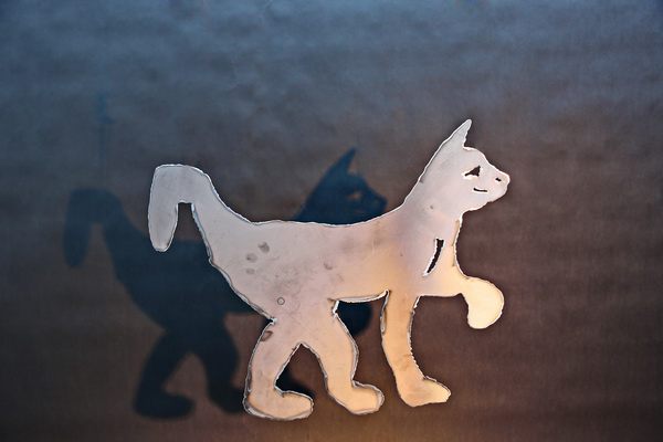 Katzen Skulptur aus plasmagetenntem Stahl.