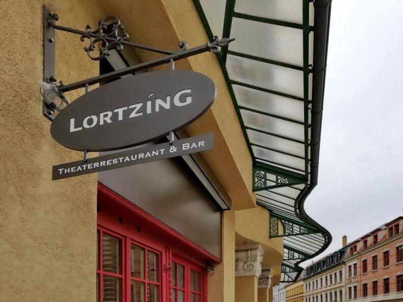 Schriftzug „Lortzing“ beidseitig mit LED hinterleuchtet