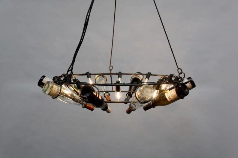 Kronleuchter aus Weinflaschen.