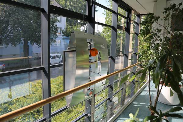 Im Harz Wasserwerke(HWW) hat sie ihren Platz vor den riesigen Fenstern gefunden und beleuchtet den Raum nun in vielen verschiedenen Farben.
