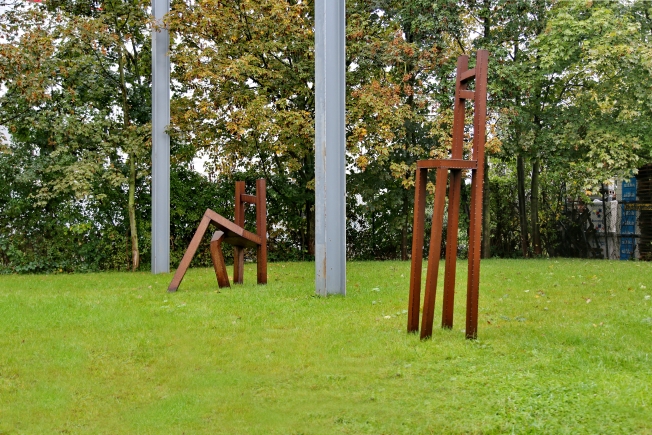 Living Chairs nenne ich die Stühle, denn Sie haben die Gestik eines Menschen. Nachdenklich betrachten sie von oben das Geschehen oder Sie machen eine kleine Pause und schlagen die Beine übereinander. Sie knien oder sie machen irgend etwas Anderes. Stahl geschweißt, rostig, stark und präsent.