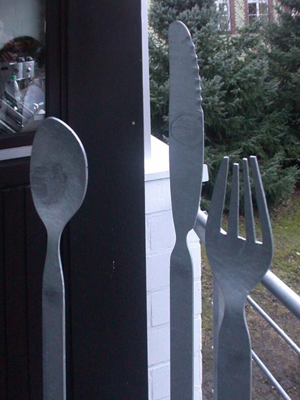 Das Besteck hat eine Höhe von 130 cm und passt zu dem von uns gefertigten Balkongeländer.