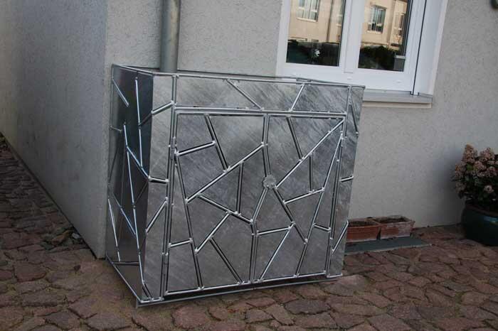 Gegen den Geruch können wir nichts unternehmen, Ihnen aber nach Ihren Ideen die Tonnen "hübsch verpacken". Ein Sichtschutz kann sowohl rein zweckmäßig gestaltet werden...3 Seiten, rechteckig, praktisch, gut oder aber den Bereich der Mülltonnen optisch aufwerten. Sozusagen ein Highlight der Umgebung werden. Farblich gestaltet, mit Konturen, Figuren frei nach Ihrer Fantasie oder Vorlagen. Schauen Sie sich etwas um und lsssen Sie sich inspirieren. Es gibt kaum etwas, das nicht machbar ist.