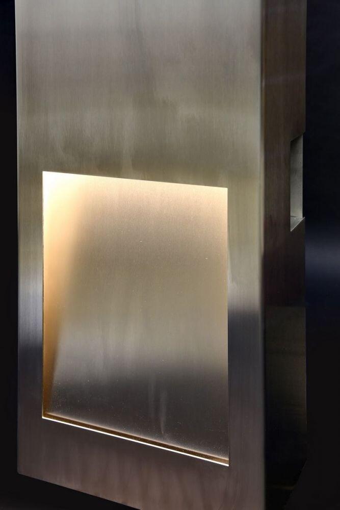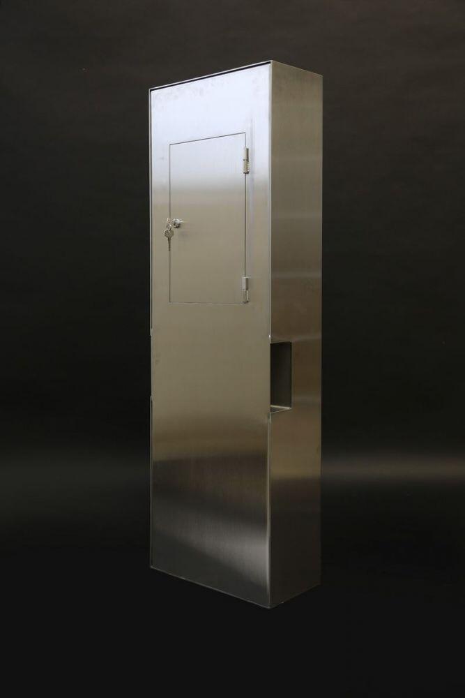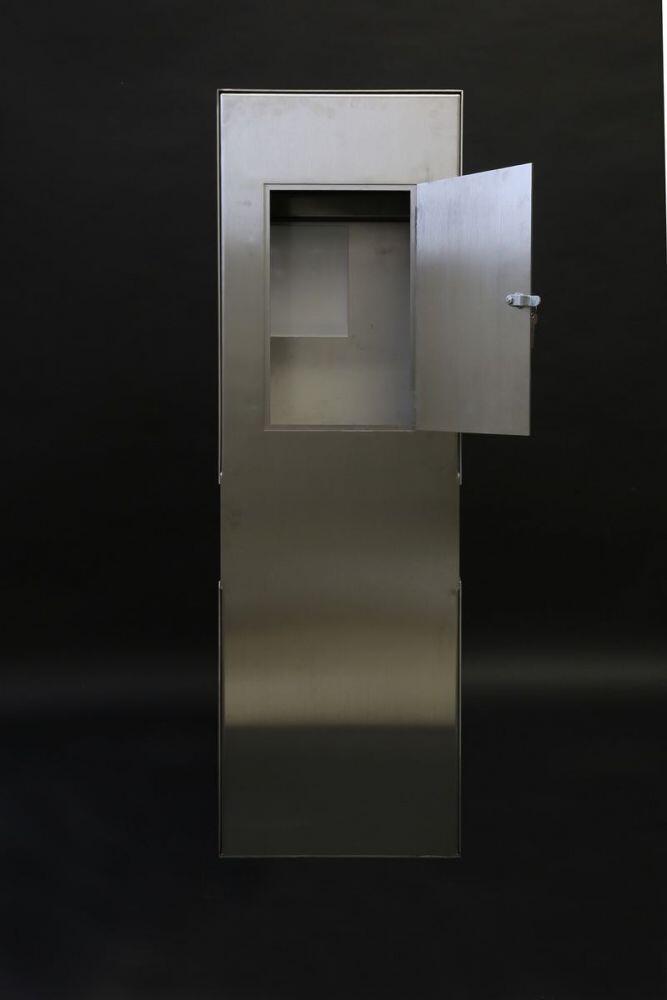 Vorn befindet sich das Lichtfach und eine Briefkastenklappe der Firma RENZ, ebenso aus Edelstahl gefertigt, Einwurfbreite 370mm.