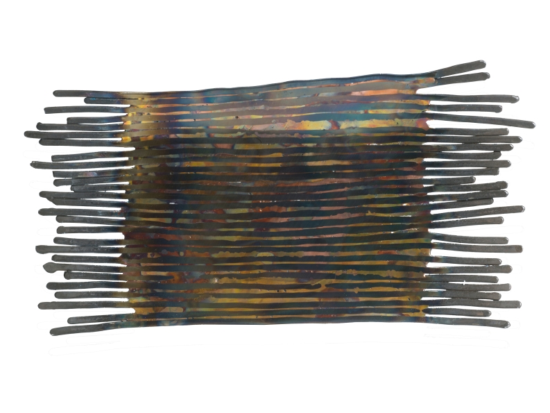 Diese Schale lebt von Spannung – von Ordnung und Aufbruch zugleich. Parallel ausgerichtete 5 mm starke Eisenstäbe bilden ihr Fundament. Mit bewusst gesetztem Abstand werden sie punktuell verschweißt. Strenge Linien entstehen. Rhythmus. Struktur.