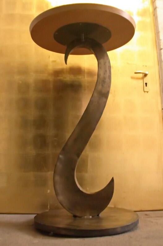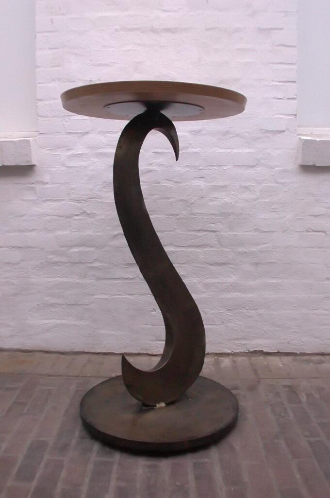 Stehtisch aus Stahl mit einer Tischplatte aus Buche