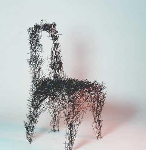 Seit 30 Jahren beschäftigt sich Peter Schmitz mit dem Thema Stuhl als Skulptur. Wie kein anderes Möbel identifiziert sich der Benutzter mit seinem Stuhl. In fast jeder Familie gibt es eine nicht wechselnde Sitzordnung. Das Thema Stuhl reicht vom bodennahen Sitzen bis zum Thron. Für Schmitz immer wieder eine Herausforderung, sich mit seinen Stuhlskulpturen dem Thema zu nähern, ob aus rostigem Stahl, verzinktem Blech, dünnem Draht oder in Edelstahlwolle.