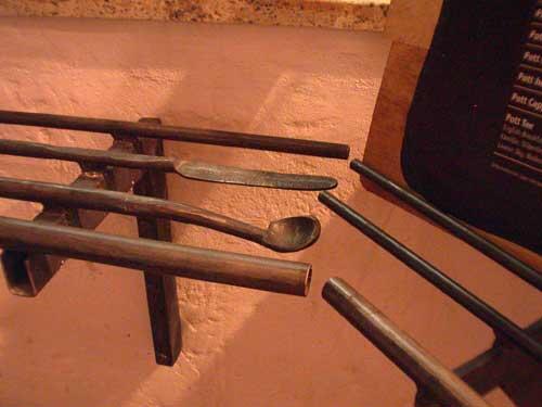 Schöne Tablettrutsche aus unterschiedlichen Queerschnitten ausgeschmiedet. Ab und zu entdeckt der Gast ein geschmiedetes Besteckteil als Abschluß.