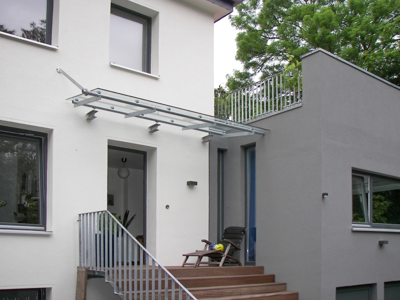 Vordach mit 3m langer Glasscheibe