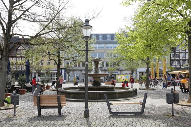 die Kunst Bänke auf dem historischen Marktplatz in Peine