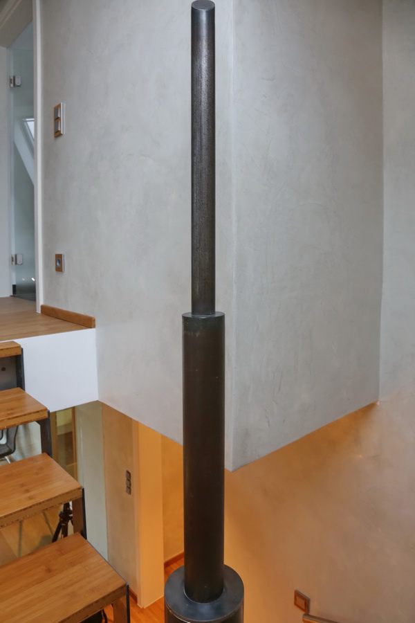 Die Mittelsäule steht wie ein Schachtelhalm im Treppenauge und verjüngt sich nach oben.